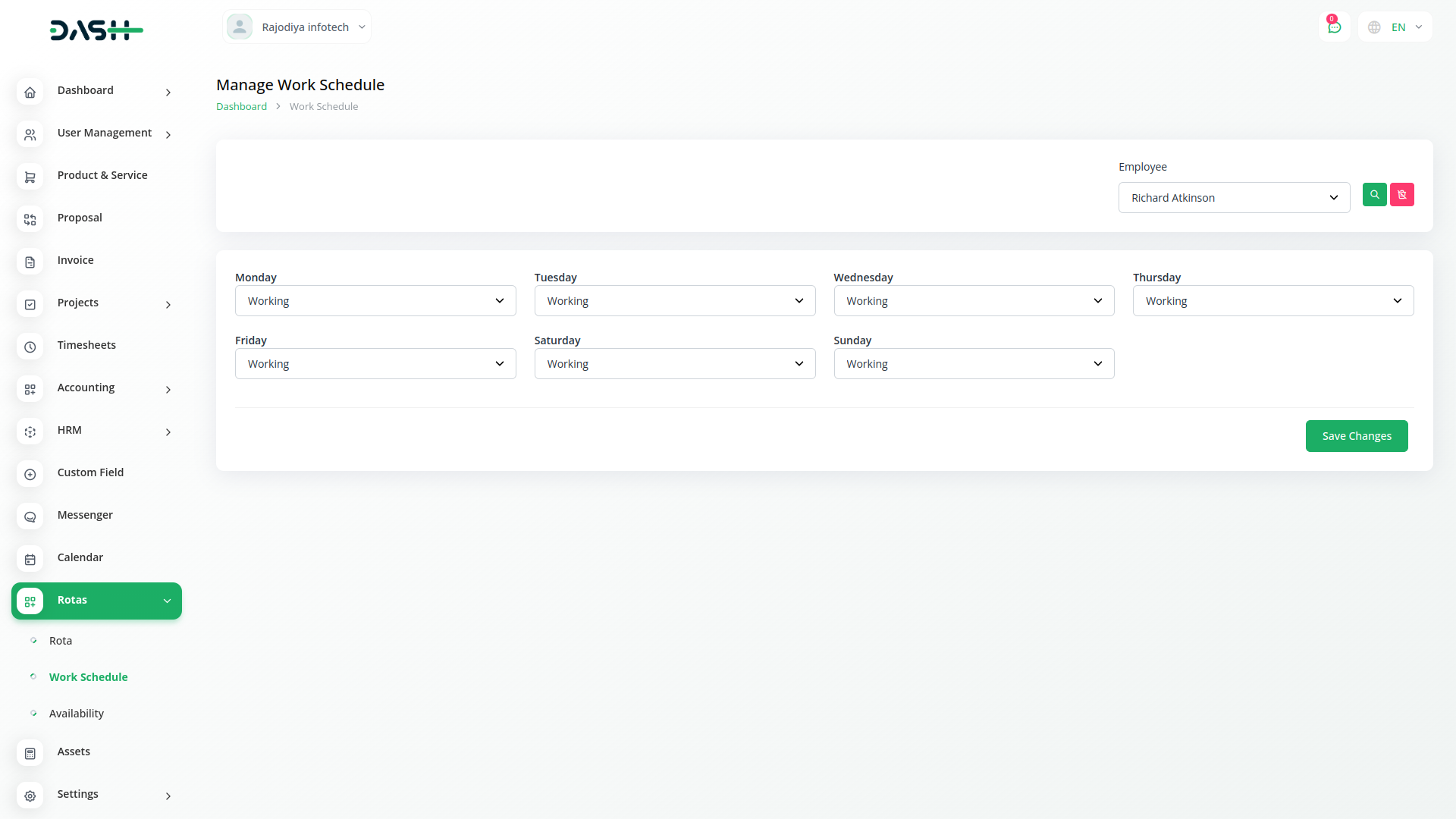 Manage every minute detail of an employee through this tab. From personal details to employee details, manage each aspect of basic information here. Employee details include employment type, holiday allowance based on days and hours, weekly hours, and working duration. Additionally, you can assign the roles and locations of that particular employee from here. Further, assign the wages and salary of any particular employee by setting their default and role-wise custom rates. Lastly, determine their working and off days through this tab.